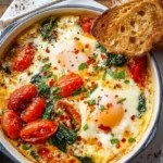 Baked Feta Eggs with Tomatoes and Spinach comes together in a few straightforward steps. First, you’ll combine the base ingredients, creating a beautiful, colorful bed for your eggs. Then, after a quick season and drizzle, it all goes into the oven to bake until golden and set. This dish is not only simple to prepare but also allows for a perfect blend of flavors as everything melds together in the oven.