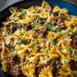 Enjoy your culinary adventure with Cajun Cream Cheese Alfredo Bowties with Spiced Ground Beef, a dish that’s sure to please every palate at your table!