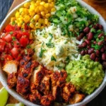 I’ve been making this Chipotle-style chicken bowl for quick weeknight dinners for years — it’s fast, portable, and hits the same smoky, tangy notes you expect from a restaurant bowl without the wait. Tender, adobo-kissed chicken sits on fluffy rice with beans, corn, creamy avocado, and a lime-cilantro finish. It’s exactly the kind of meal that’s easy to scale for a family night, meal prep, or a casual dinner party.