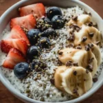 A nutritious and satisfying bowl that combines cottage cheese with fruits, nuts, and seeds for a protein-packed meal.