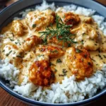 I grew up on simple one-skillet meals, and this creamy smothered chicken and rice is one I come back to when I want comfort without fuss. Tender seasoned chicken simmers right in the rice so the grains soak up savory broth and garlic. A splash of heavy cream and a sprinkle of Parmesan finish the sauce into something silky and satisfying—perfect for a busy weeknight or a low-key Sunday dinner. If you like creamy chicken bowls, you might also enjoy this Creamy chicken and rice soup, which leans even more on the soupier, spoonable side.