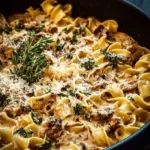 I first made creamy turkey stroganoff on a rainy weeknight when I wanted something cozy but lighter than the classic beef version. Ground turkey keeps the dish lean, while a sour-cream-based sauce makes the noodles comforting and silky. It’s the kind of skillet meal that comes together quickly, feeds a family, and reheats well for lunches. If you like variations on comfort food, you might also enjoy this twist on a similar casserole-style dinner I use sometimes, my baked chicken stroganoff.