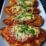 Air-fryer chicken Parmesan combines the best of both worlds: the crispiness of breaded chicken and the melty, saucy finish of classic Parm. It’s faster than oven-baked versions because the air fryer concentrates heat, so you get a golden crust in about 12 minutes. Families love it because kids usually accept the crunchy coating and stretchy cheese, while home cooks appreciate the minimal cleanup and pantry-friendly ingredients. Make it for a busy weeknight, a casual dinner party, or any time you want the comfort of Italian-American flavors without the extra oil and time.