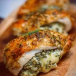 Elevate your dinner with these pesto-stuffed chicken breasts filled with mozzarella and sun-dried tomatoes, perfect for weeknights or special occasions.