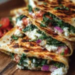 Mediterranean Quesadillas with Spinach, Feta, Mozzarella, and Red Onion are a delightful culinary fusion that brings a taste of the Mediterranean right to your kitchen. These quesadillas are not just any ordinary cheesy creations; they’re packed with vibrant flavors and fresh ingredients, making them perfect for a quick weeknight dinner or a relaxing weekend brunch. I remember the first time I made them—whenever the craving for something light yet satisfying strikes, these quesadillas never fail to impress. They come together quickly, require minimal effort, and deliver incredible taste, making them special for any occasion.