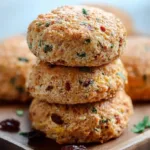 These biscuits are built for busy people who don’t want to compromise nutrition for convenience. Each biscuit combines Greek yogurt and eggs for a high-protein base, ground flaxseed for fiber and omega-3s, plus chicken sausage and cheese for savory flavor and extra protein. They’re quick to assemble, freeze beautifully, and are kid- and lunchbox-approved. Make a batch on Sunday and you’ve got breakfasts that reheat in under a minute. They’re also forgiving: the batter is thick and easy to scoop, so even baking beginners get reliable results.