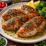 This chicken pairs beautifully with simple sides: buttery mashed potatoes that soak up the sauce, steamed green beans, or a lemony arugula salad to cut the richness. For a lighter plate, serve over quinoa or a bed of wilted spinach. If you prefer crisp edges, finish slices under a hot broiler for 1–2 minutes. For alternative methods, check out these air fryer chicken breast recipes to adapt texture and timing.
