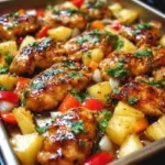 I still remember the first time I roasted chicken with pineapple on a single sheet pan — the kitchen filled with sweet, savory steam and dinner came together faster than I could set the table. Hawaiian Chicken Sheet Pan is a breezy one-pan meal: cubed chicken, fresh pineapple, and bell pepper tossed in a simple soy-olive dressing and baked until the edges caramelize. It’s a favorite for busy weeknights, casual family dinners, and anyone who wants tropical flavor without fuss. If you enjoy quick sheet-pan dinners, this version is in the same easy family as an easy Hawaiian chicken sheet pan you might have tried before — but with tips below to make it your own.