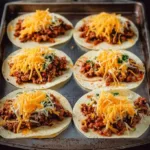 This recipe hits all the practical notes: it’s quick, budget-friendly, and kid-approved. You get full taco flavor with minimal hands-on time and almost no dishes. Filling the shells on a sheet pan means the taco shells bake crisp and the cheese melts evenly — no juggling hot pans or filling each shell individually at the stove. It’s perfect for weeknight dinners, casual gatherings, or when you want Mexican flavors without a long ingredient list.