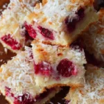 These bars are delicious on their own or dressed up. Serve warm with a scoop of vanilla ice cream or cooled with a dollop of lightly sweetened whipped cream. For a brunch board, cut into small squares and pair with fresh berries and a pot of coffee or matcha. If you want a complementary flavor, a light drizzle of dark chocolate adds richness without overpowering the raspberry-coconut balance.